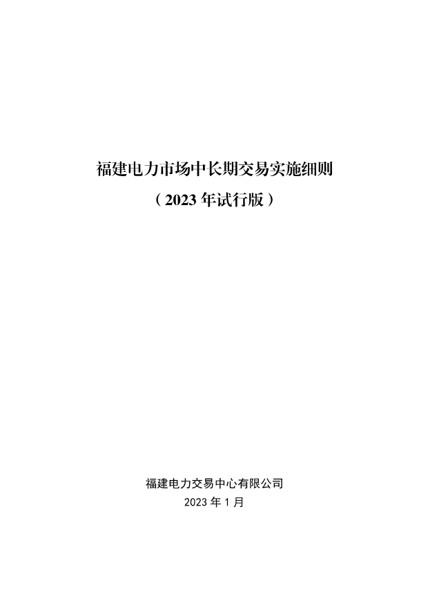 2月1日,福建電力交易中心有限公司印發《福建電力市場中長期交易實施細則(2023年試行版)》的通知 。