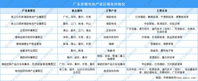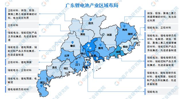 近年,廣東省不斷優化鋰電池產業區域布局,重點建設珠江口東岸儲能電池產業集聚區,珠江口西岸儲能電池產業集聚區,正極材料集聚區,鋰電硅碳負極材料集聚區,鋰電隔膜生產制造基地,電解液專業園區,銅箔、鋁箔、聚偏二氟乙烯膜等輔助材料集聚區,儲能控制產品及系統集成、先進裝備制造集聚區,電池回收利用產業集聚區等。