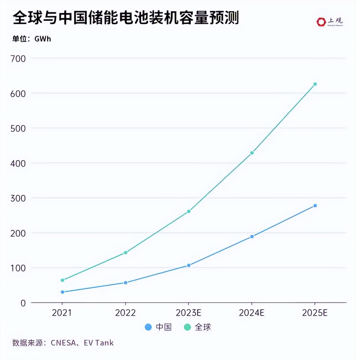中國鋰電池儲能產業正在快速擴張。根據中關村儲能產業技術聯盟和ev tank的預測,2025年中國儲能電池裝機容量將達到276.8吉瓦時,占全球近45%。當前,國內傳統鋰電池龍頭企業,如寧德時代、比亞迪、億緯鋰能等,在儲能方面多有布局。