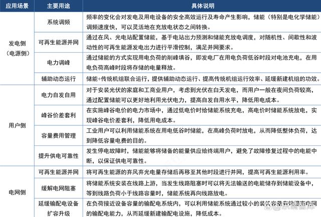 發(fā)電側(cè)可用于系統(tǒng)調(diào)頻、可再生能源并網(wǎng)、電力調(diào)峰、輔助動態(tài)運行等;在用戶側(cè)主要用于電力自發(fā)自用、峰谷價差套利、容量電費管理和提升供電可靠性等;在電網(wǎng)側(cè)主要用于可再生能源并網(wǎng)、緩解電網(wǎng)阻塞、延緩輸配電設(shè)備擴(kuò)容升級等。