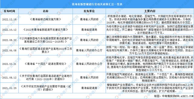 作為我國新能源應用最為廣泛的地區之一,青海省電力系統對于儲能的需求較為迫切。2022年2月,《青海省“十四五”能源發展規劃》指出,依托鹽湖資源優勢,青海積極開展電化學、壓縮空氣等各類新型儲能應用.依托青海鹽湖資源優勢,積極推廣“新能源+儲能”模式,開展壓縮空氣、飛輪等儲能試點,探索建立共享儲能運行模式,推動電源側、電網側和用戶側百萬千瓦級化學儲能示范建設,提高電力系統中短周期儲能調節能力。青海新型儲能相關政策: