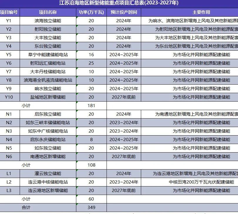 在沿海地區重點開展 19個 大型新型儲能項目的規劃布局工作,項目規模總計 349萬千瓦, 其中: