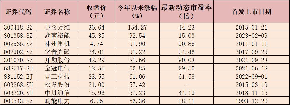 表:今年以來漲幅居前十的儲能概念股一覽 制表:楚麗君