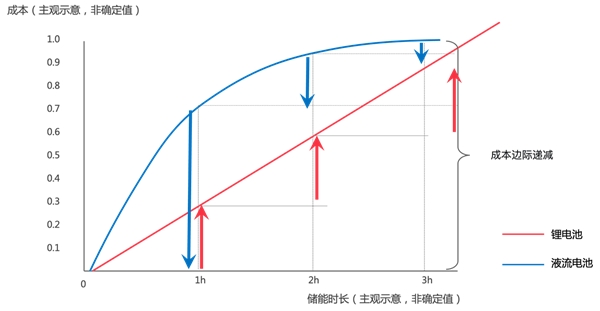 更為關鍵的是,相較平均儲能時長只有2小時的鋰電池,儲能時長可達8小時以上的液流電池可應對日漸重要的長時儲能需求。