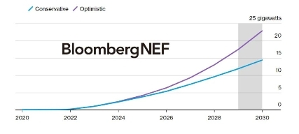 圖:中國液流電池裝機規模預測(彭博新能源財經)