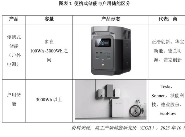 便攜式儲能產品,更通俗的叫法是戶外移動電源。這是一種替代傳統小型燃油發電機的、通常內置鋰離子電池的小型儲能設備,可提供穩定交流/直流電壓輸出的電源系統。設備的電池容量在100Wh—3000Wh,多配有AC、DC、Type-C、USB、PD等多種接口。