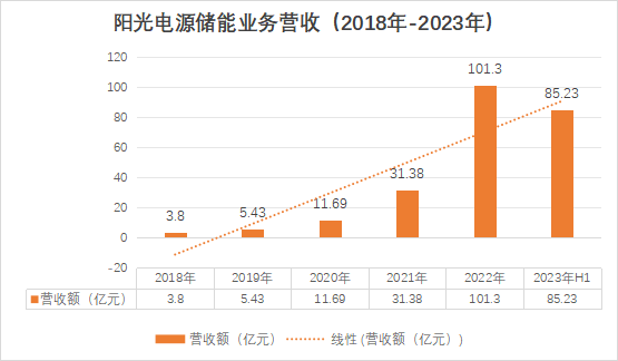 除了出貨量之外,業績,也是一面鏡子,它是公司過往戰略的倒影。儲能營收的飛速增長,無疑也印證了陽光電源儲能布局和戰略定位的成功。2023年4月25日,陽光電源披露2022年年度報告,其儲能系統營收實現101.26億,首次破百億。2023年半年報顯示,僅半年其儲能營收已經高達85.23億。