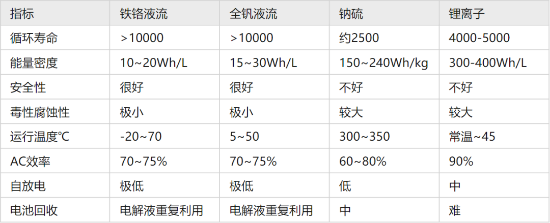 圖說:液流電池(鐵鉻、全釩)與其他電化學電池技術對比 來源:知乎
