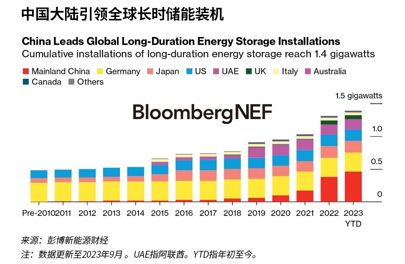 根據彭博新能源財經的數據,截止到今年9月,全球已經投產的長時儲能達1.4GW/8.2GWh,而儲備項目已經達到33GW/156GWh,其中,中國是最大的市場,占儲備項目裝機容量的92%。