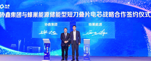 就在10月25日的325Ah電芯下線儀式現(xiàn)場上,蜂巢能源與四川能投分布式能源有限公司、四川智慧綠動能源有限公司、蘇州中鑫新能源有限公司在儀式現(xiàn)場簽訂了儲能項目合作協(xié)議,共同開發(fā)共享儲能與工商業(yè)儲能市場。