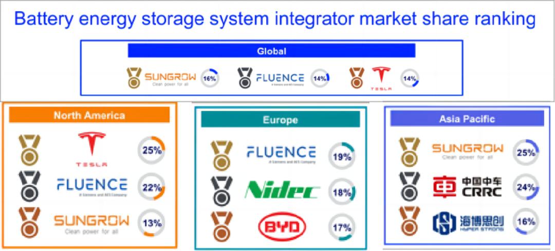 來(lái)源:Wood Mackenzie; 排 名基于2022年儲(chǔ)能系統(tǒng)集成商的shipment numbers; 涵蓋大儲(chǔ)、戶(hù)儲(chǔ)和工商業(yè)場(chǎng)景