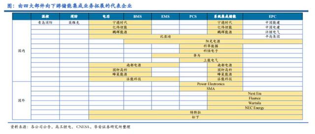 具體來說,儲能系統的核心有“四大件”:電池組、儲能變流器(PCS)、電池管理系統(BMS)、能量管理系統(EMS)等。早期每個環節的核心企業,都能過得不錯。但如今,越來越多企業,從單一產品走向系統集成業務,加大一體化力度,如陽光電源、科陸電子從PCS進入系統集成,寧德時代、億緯鋰能等公司從電池進入系統集成。
