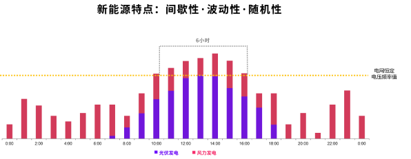 根據2022年,全國光伏電站平均利用1452小時,全國風力電站平均利用2259小時計算,每天的工作時長分別為4小時和6.2小時。如果電站配備的是2小時以內的中短時儲能,依舊無法保護電網免受因新能源發電不穩定所帶來的沖擊。