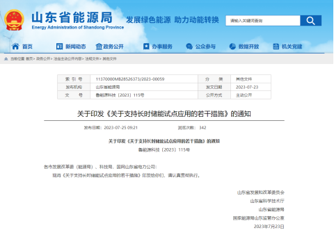 2023年7月,山東省出臺《關于支持長時儲能試點應用的若干措施》,要求試點項目規模不低于10萬千瓦,滿功率放電時長不低于4小時,這是國內首個支持長時儲能發展的地方性專項政策,長時儲能可享受優先接入電網、優先租賃、容量補償標準提高、減免輸配電價等優惠政策。