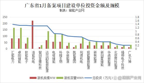 從1月廣東儲能備案項目建設單位來看,總投資額超83億。其中,索英電氣2個項目總投資金額高達22億元,總規模為600MW/1200MWh;廣訊力神總投資金額最少,為27.84萬元,規模為0.1MW/0.232MWh;當然,在這些建設單位中像協鑫、恒運儲能、皇鼎儲能都是經常出現的企業。