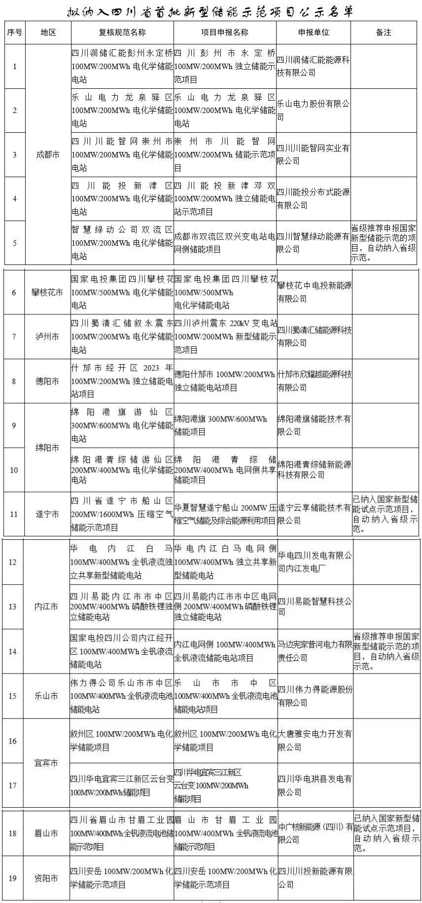 四川省發展和改革委員會 四川省能源局關于公示擬納入四川省首批新型儲能示范項目名單的通知