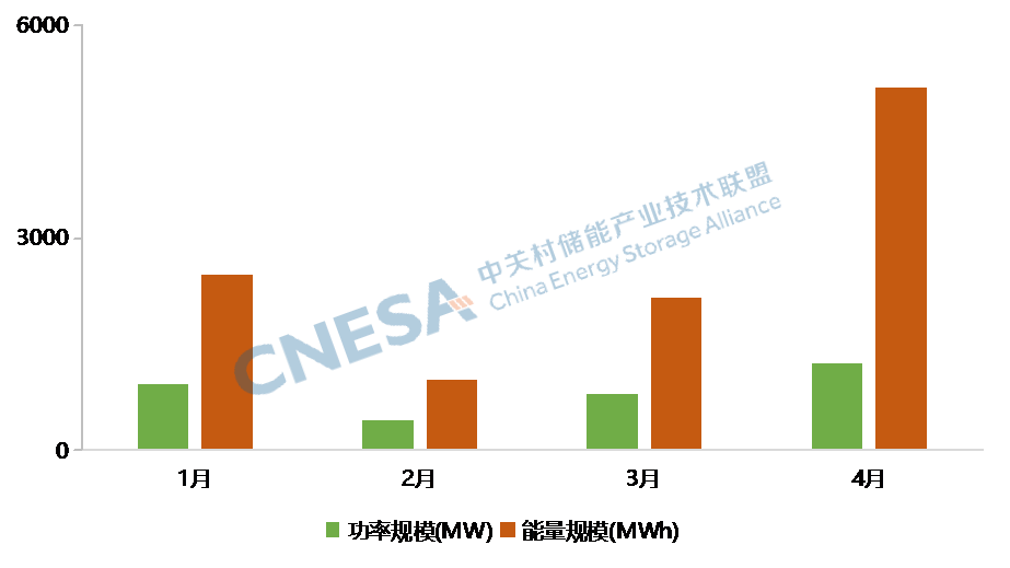 圖1 2024年1-4月中國新增運行新型儲能項目裝機規模