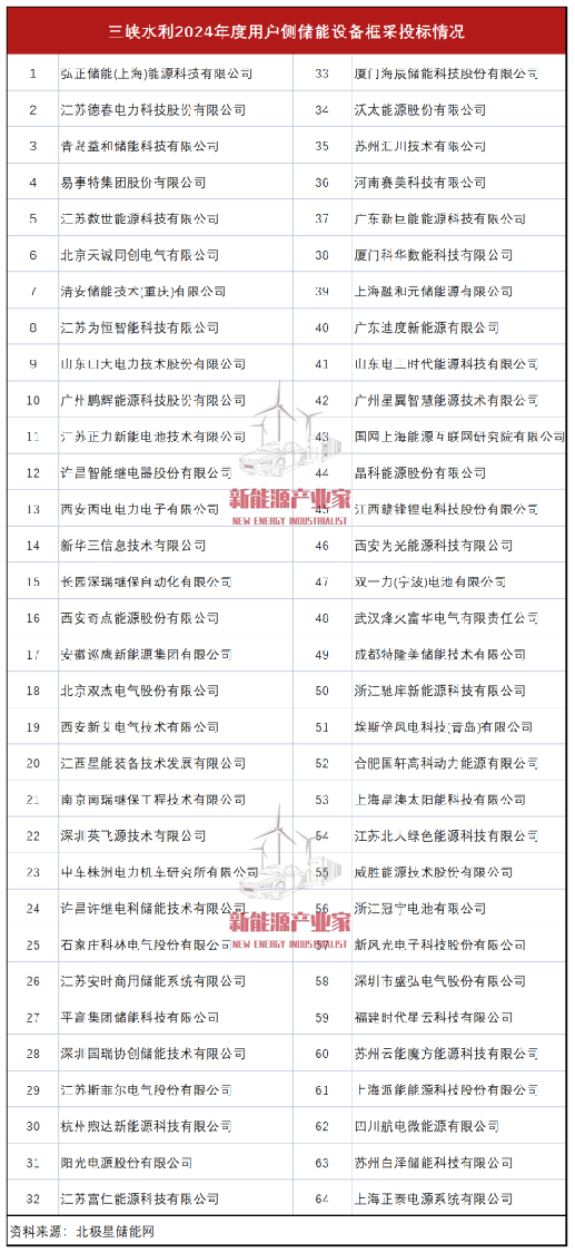 不久前,三峽水利2024年度用戶側儲能設備框架協議采購,總共有64家企業投標。