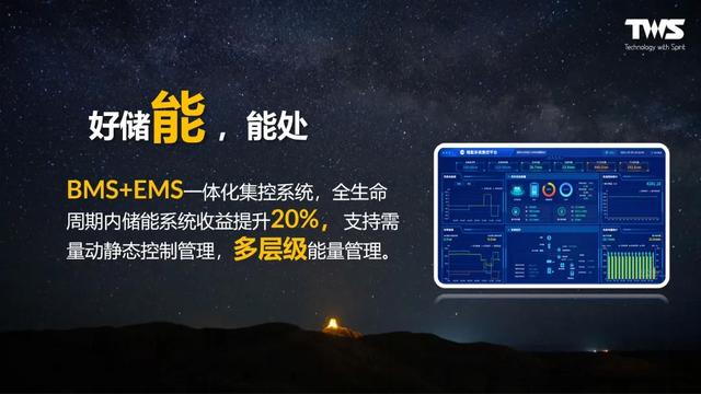 新品BMS+EMS采用一體化集控系統,使得全生命周期內儲能系統收益提升20%;并且支持需量動靜態控制管理,做到多層級能量管理;結合智能優化算法和云平臺遠程監控,AI模型自學習優化、實時診斷健康狀態、出具數據報告分析,以精準科學的“能源管理方案”助力工商業儲能高效設計運營。
