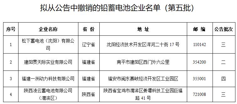 2.擬從公告中撤銷的鉛蓄電池企業名單(第五批)