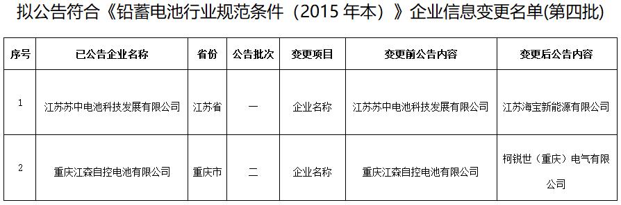 3.擬公告符合《鉛蓄電池行業規范條件(2015年本)》企業信息變更名單(第四批)