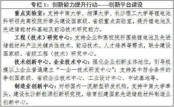 充分發揮長株潭國家自主創新示范區、湘江新區、湖南自貿區等國家級平臺優勢,支持長沙加快引進動力電池、儲能電池關鍵材料及電芯電池高端制造等產業鏈關鍵環節項目和上下游優質企業,加快產業創新平臺、中試測試平臺、檢驗檢測平臺建設,打造全球先進儲能材料研發中心城市,株洲、湘潭配套建設一批電池正負極、電芯電池、電池回收利用等項目,強化三市產業協同效應,引領和帶動全省鋰電池及先進儲能材料產業高質量發展。