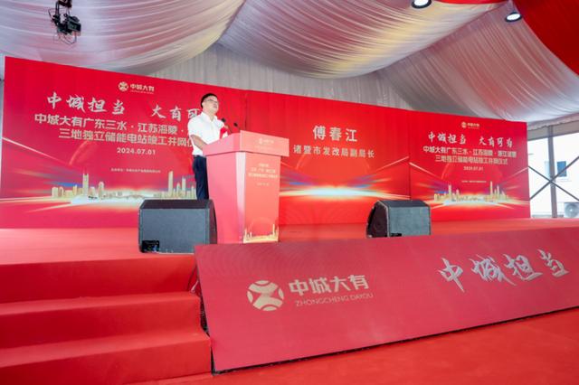 7月1日,中城大有產(chǎn)業(yè)集團有限公司(下稱中城大有產(chǎn)業(yè)集團)在廣東三水、江蘇海陵、浙江諸暨三地舉行了獨立儲能電站聯(lián)動竣工并網(wǎng)儀式。這標(biāo)志著中城大有產(chǎn)業(yè)集團在新能源儲能產(chǎn)業(yè)發(fā)展已經(jīng)取得重要階段性成果,為成為儲能生態(tài)行業(yè)領(lǐng)跑者奠定了堅實的項目基礎(chǔ)。來自三地多位政府領(lǐng)導(dǎo)、業(yè)內(nèi)專家學(xué)者、企業(yè)代表、媒體代表等嘉賓共同見證了這一重要時刻。