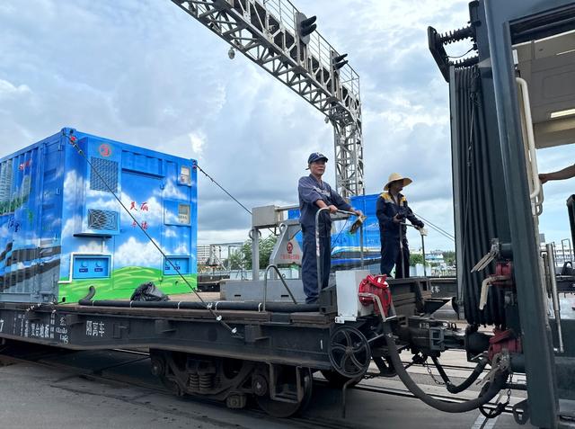 據廣鐵集團機務部介紹,首批投入使用的移動儲能電站共有6臺,分別儲備在瓊州海峽兩岸的鐵路南北港。使用初期先滿足出島過海列車以及白天進島列車編組作業供電。后續將進一步推廣至更多進出島列車上。