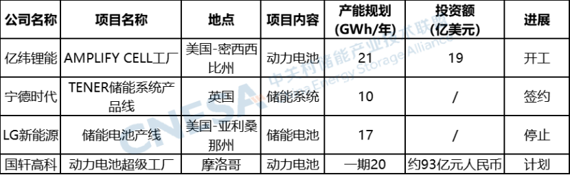 此外,本月,億緯鋰能、寧德時代、國軒高科等國內頭部電池企業在海外的產能布局如火如荼進行中,相繼宣布了其海外電池和儲能系統的規劃情況。