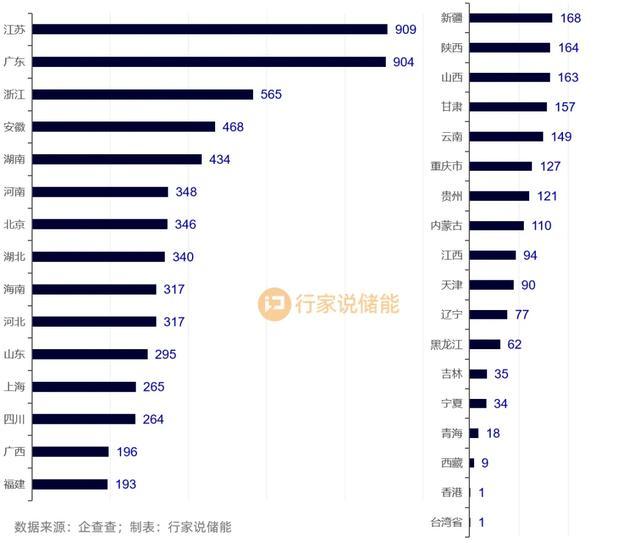 分區(qū)域來看,7月新增儲能相關(guān)企業(yè)主要分布在江蘇、廣東、浙江等地,這些地區(qū)也正是工商業(yè)儲能發(fā)展相對比較領(lǐng)先的地區(qū)。