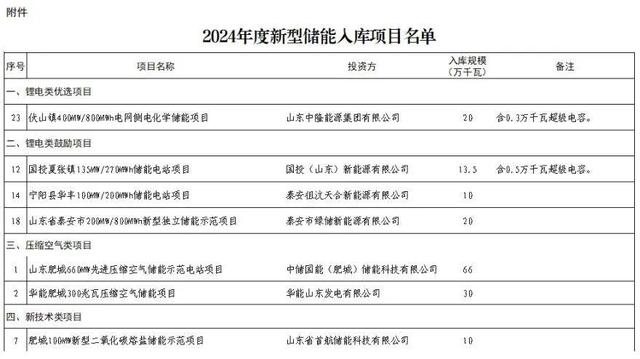 山東省能源局發布關于公布2024年度新型儲能入庫項目的公示
