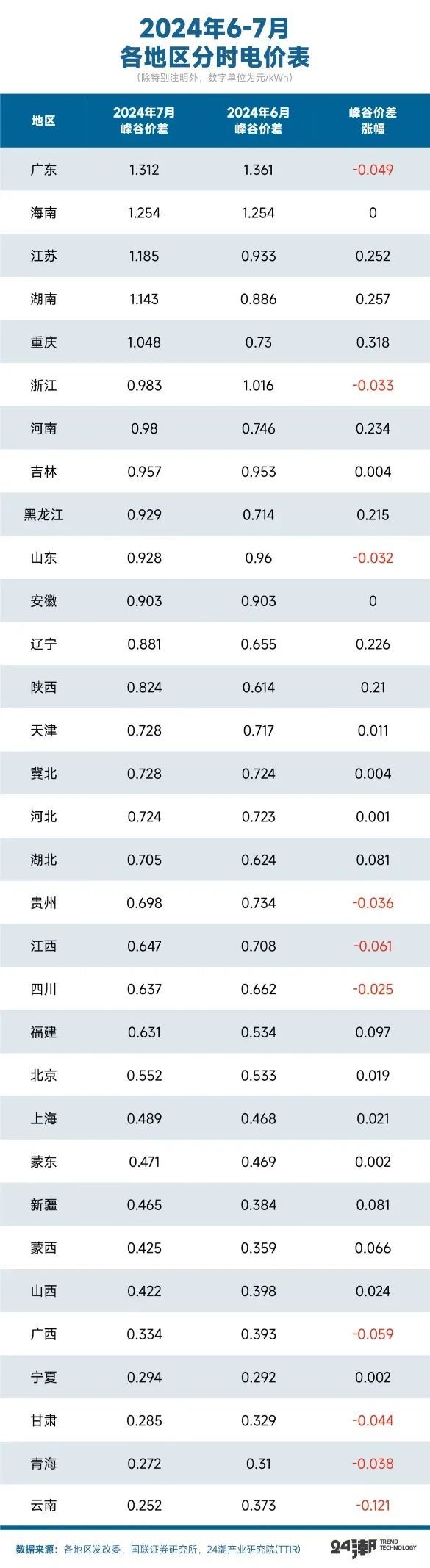 而國(guó)聯(lián)證券統(tǒng)計(jì)數(shù)據(jù)也顯示,從全國(guó)范圍內(nèi)來(lái)看,全國(guó)共有10個(gè)地區(qū)峰谷電價(jià)差減小,20個(gè)省份峰谷價(jià)差擴(kuò)大,2個(gè)省份保持不變。其中工商業(yè)儲(chǔ)能收益率下滑幅度最大的為浙江省,主要原因在于分時(shí)電價(jià)政策的調(diào)整,6月起浙江不再執(zhí)行尖峰電價(jià),峰谷價(jià)差變?yōu)楦叻咫妰r(jià)與低谷電價(jià)之差,價(jià)差下降幅度超20%。