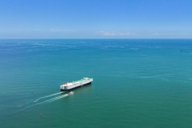 在深圳市深汕特別合作區小漠國際物流港,首艘由國內船廠建造的比亞迪滾裝運輸船“開拓者1號”鳴笛出海,劃開一色的海天,向全球各大港口進發。船上超5000臺搭載了廣東制造儲能電池的新能源汽車整齊排列,正踏浪奔赴全球各地。