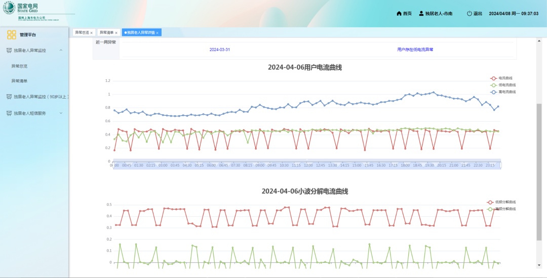 “電暖田林”電力大數據為老服務項目于2024年2月正式立項,通過電力大數據分析,以徐匯區田林街道孤寡老人數據為樣本,創新構建用能識別模塊,實現對孤寡老人的動態跟蹤和用電風險識別和告警,幫助社區更好地服務孤寡老人。在前期準備過程中,市南公司通過主流二分類算法開展分析及研究,并結合現場施工改造計劃,完成了田林街道首批173戶用戶的硬件及系統調試工作。