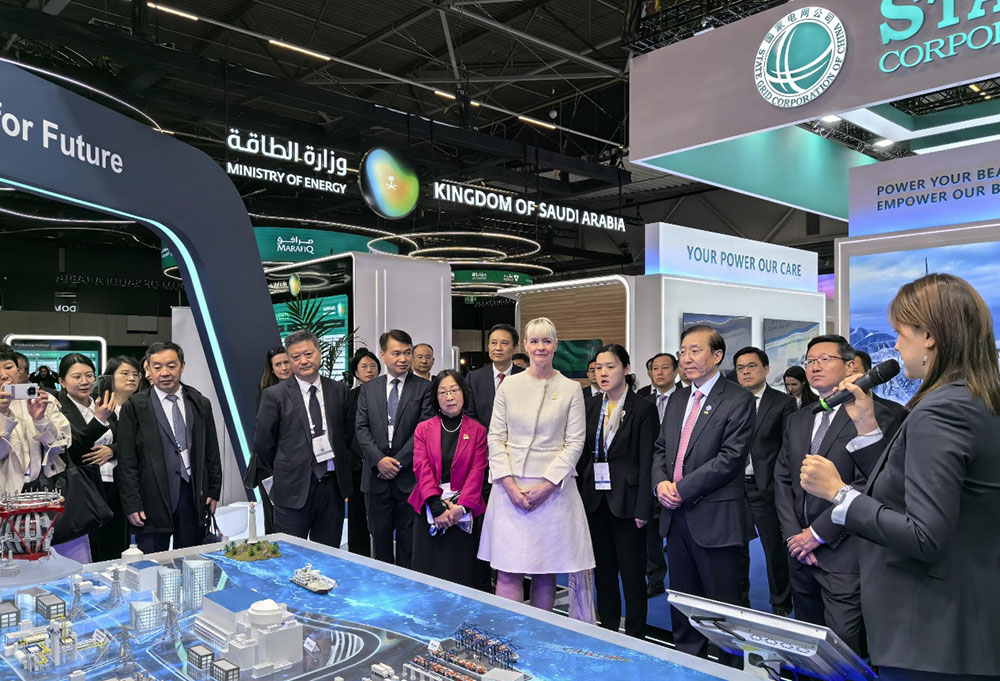 本次大會附設展覽面積達到13500平米,中國國家電網(wǎng)有限公司、中國核工業(yè)集團有限公司、華為技術有限公司、江蘇中天科技股份有限公司、威勝集團有限公司等中國企業(yè)以充實的展示內(nèi)容和創(chuàng)新的展示方式向全球能源同行展示了先進的發(fā)展理念、實踐成果、技術裝備和客戶解決方案。中方代表團還赴鹿特丹港、零碳城市光儲充一體化未來項目現(xiàn)場進行了實地參觀。
