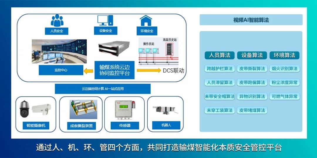 整套解決方案由四部分構成:輸煤系統工業電視升級改造、推煤機盲區監控方案、斗輪機操作人員識別驗證及監控方案、輸煤系統本質安全管控解決方案。