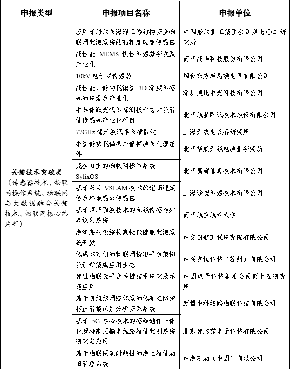 2018年物聯網集成創新與融合應用項目名單