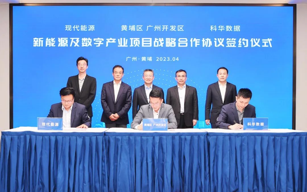 近日,廣州黃埔區、廣州開發區,科華數據、現代能源集團三方舉辦戰略合作協議簽署活動。