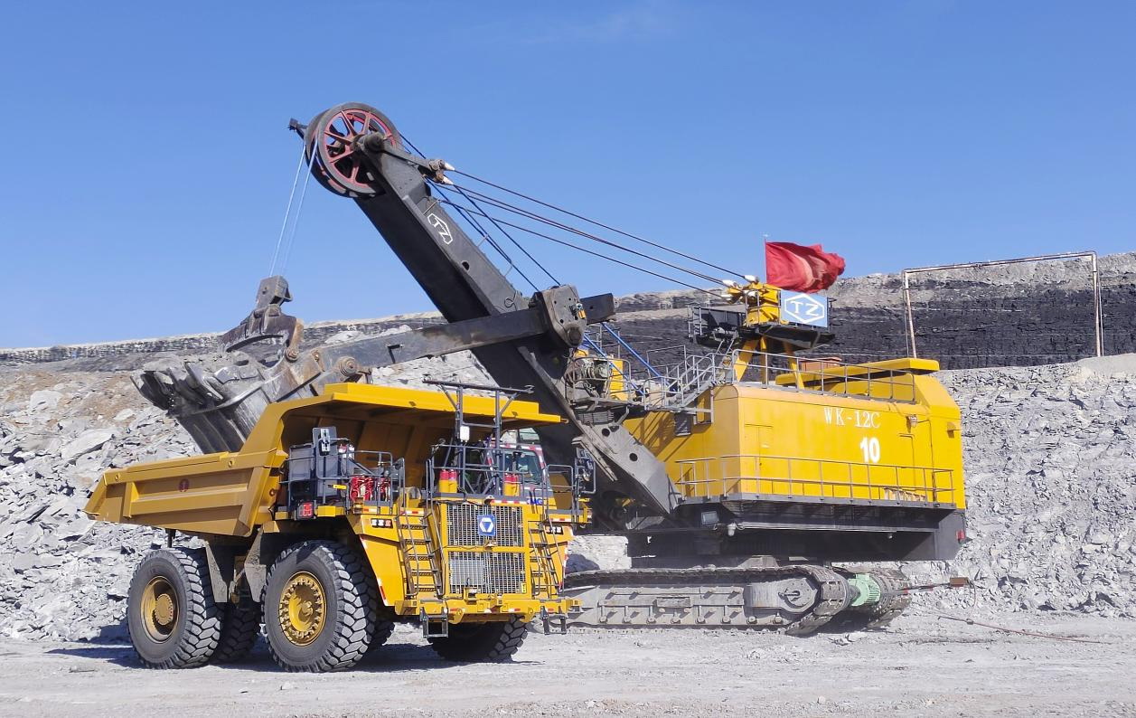 遠程操控電鏟正在與無人駕駛礦卡協同作業