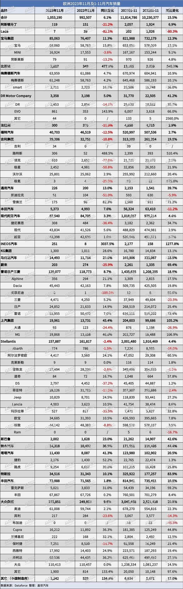 根據(jù)市場研究機構(gòu)Dataforce的初步數(shù)據(jù),11月份,歐洲新車銷量同比上漲6.1%,超過105萬輛。