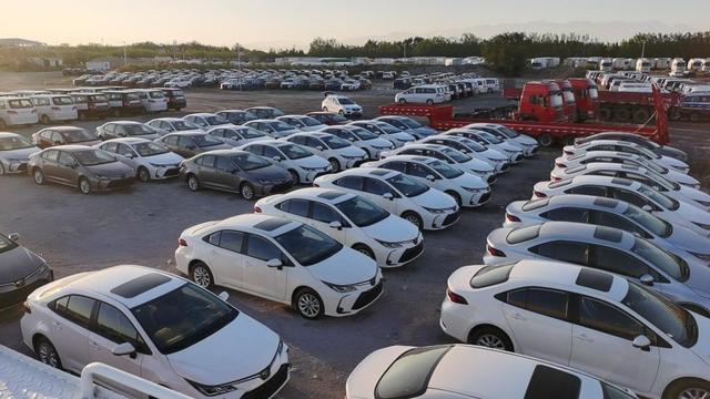 2023年9月,蘇美達百余臺二手新能源汽車整裝待發,從南京發出,在新疆霍爾果斯口岸集港。(受訪者供圖)