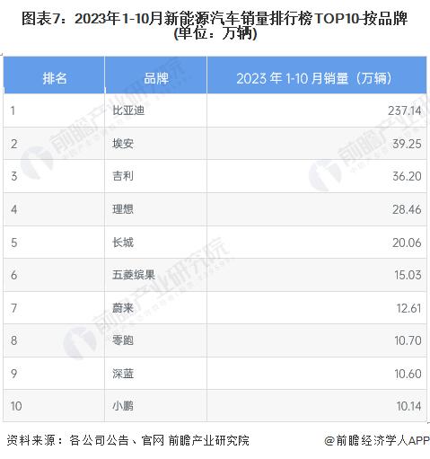 從銷量方面來看,2023年1至10月,我國新能源汽車銷量第一名的品牌為比亞迪,以237.14萬輛遙遙領先全行業。第二名為廣汽埃安,銷量為39.25萬輛;第三名為吉利汽車,銷量為36.20萬輛。造車新勢力三大車企中,理想排名第四,銷量為28.46萬萬輛,小鵬排名第十,銷量為10.14萬輛,蔚來排名七,銷量為12.61萬輛??傮w來看,2023年1至10月,傳統車企新能源汽車銷量總體好于造車新勢力。
