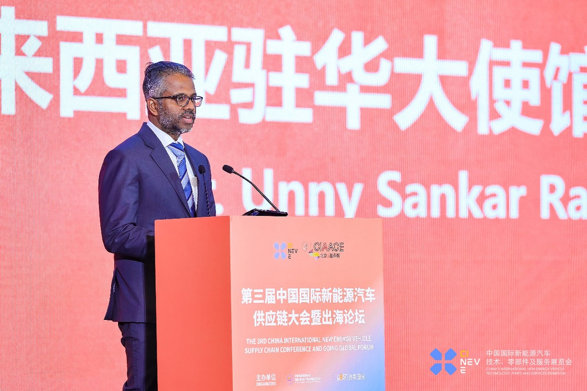 國家信息中心正高級經濟師徐長明先生發(fā)言國際合作展望:共探出海廣闊前景新能源汽車產業(yè)全球化趨勢日益明顯,國際合作與出海發(fā)展成為企業(yè)拓展市場、提升競爭力的重要途徑。本環(huán)節(jié)旨在為國內外企業(yè)搭建溝通橋梁,來自7個國家的駐華使節(jié)分享各國新能源汽車產業(yè)的市場機遇與優(yōu)惠政策,為中國企業(yè) “走出去” 提供精準信息,同時幫助國外企業(yè)尋求合作,促進資源共享與技術交流,攜手開拓全球市場,實現(xiàn)互利共贏,提升中國新能源汽車產業(yè)的國際地位。出海政策:馬來西亞馬來西亞駐華大使館經濟公使Unny Sankar Ravi Sankar先生發(fā)表演講。他高度認可中國在新能源汽車行業(yè)的全球領導地位,期望中國能與馬來西亞中小企業(yè)分享技術,共同開發(fā)前沿技術,實現(xiàn)互利共贏。他提到,“一帶一路”