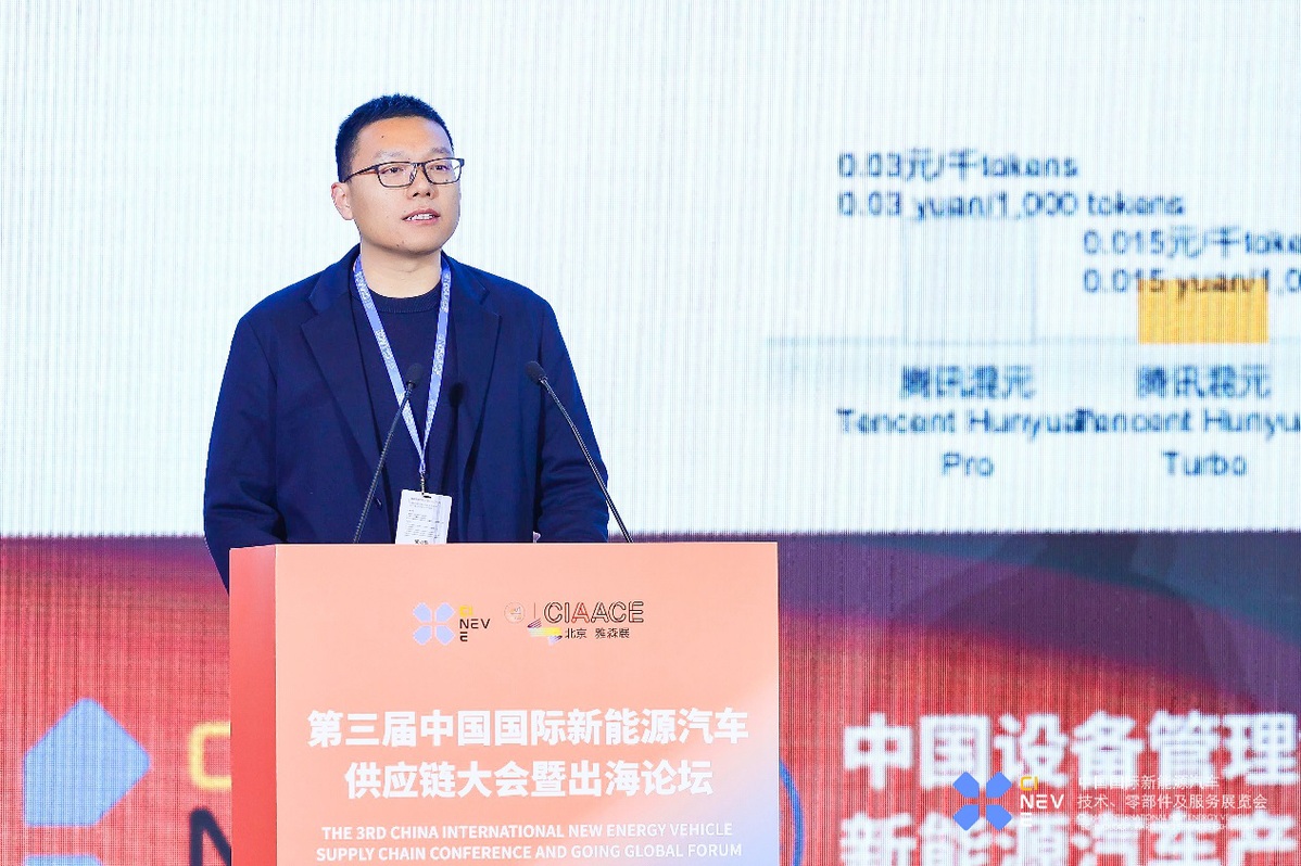 華為無線網絡產品線 5.5G 領域副總裁馬金斗先生發(fā)言技術主題分享:AI大模型助力汽車產業(yè)升級騰訊云智能AI解決方案總監(jiān)王川南分享了以《AI大模型助力汽車產業(yè)升級》為題的演講。在基礎模型層面,騰訊全鏈路自研的混元大模型具備生文、圖、視頻的多模態(tài)能力。開發(fā)工具上,具備大模型研發(fā)至應用全棧技術,大模型訓練平臺TI助力企業(yè)穩(wěn)定高效進行大規(guī)模訓練,知識引擎平臺支持低代碼開發(fā)智能體應用。同時,分享了騰訊云基于大模型工具鏈在汽車行業(yè)研產供銷服的多個應用場景及案例。