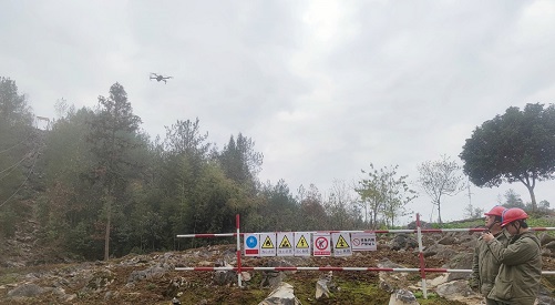 中國電力網訊  12月8日,在湖北省建始縣花坪鎮三岔槽村,湖北送變電工程有限公司恩施東-朝陽500千伏線路工程(恩施段)項目工人們翻山越嶺奔赴(T53號)基礎施工場,他們忍著刺骨寒風,運用無人機對電網施工點位開展安全巡查,助力工程建設平穩推進。(郭秀春、郭暉)