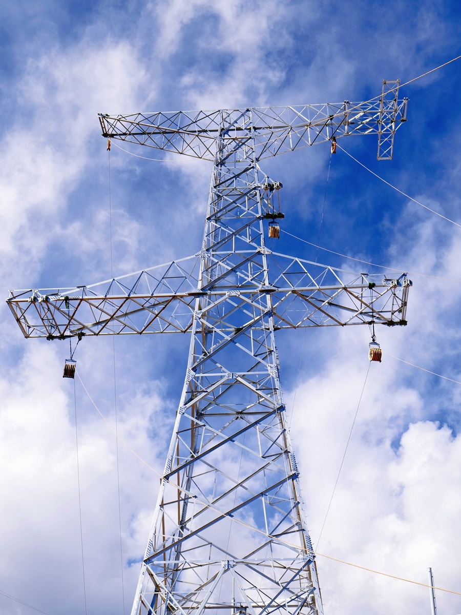電力工人正在高空進行鐵塔組立作業