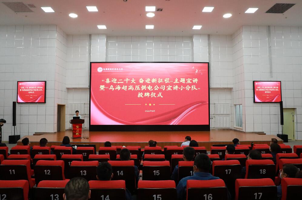 中國電力網訊 為深入宣傳貫徹好習近平新時代中國特色社會主義思想,持續加強新時代黨的創新理論宣傳普及工作,推動宣講隊伍建設,讓黨的創新理論“飛入尋常百姓家”,喜迎二十大的召開。6月9日,烏海超高壓供電公司舉行“喜迎二十大 奮進新征程”主題宣講活動暨“烏海超高壓供電公司宣講小分隊”授牌儀式。烏海市委宣傳部相關領導為宣講小分隊授牌。