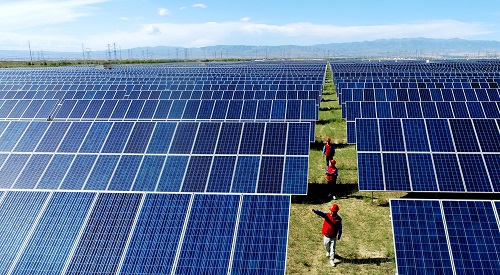 國網青海電力員工在海南州光伏產業園區檢查設備運行情況。