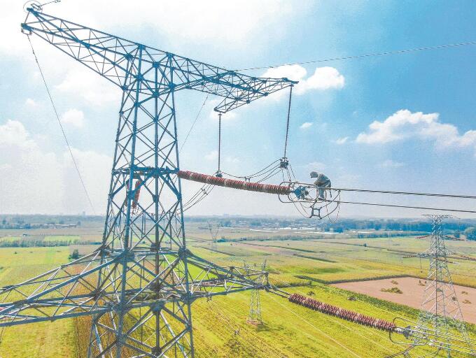 國網河南超高壓公司員工開展帶電作業,保障可靠供電。段家順 攝