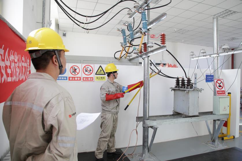 第一項是停送電倒閘操作,評分方式為裁判組打分。參賽選手兩人一組,一人填寫停電操作票、另一人填寫送電操作票,分別擔任操作人、監護人;安全防護用品、安全工器具設置了過期標簽,檢驗參賽選手是否能正確使用;實際操作過程中的違章作為扣分項。